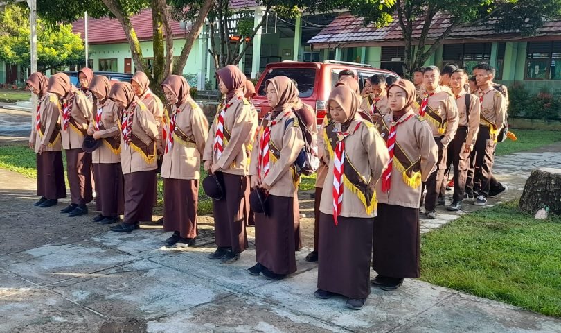 Gugus Depan Gerakan Pramuka 01.181 – 01.182 MAN 1 Lahat Melaksanakan Kegiatan Heking ( Pengambilan Nilai Praktik ) Ekstra Pramuka Di Buka Kepala MAN 1 Lahat Diwakilkan oleh Wakil Kepala Bidang Kesiswaan Wahlul, S.Pd.I Di Lapangan Upacara MAN 1 Lahat. Sabtu, 18 Juni 2022