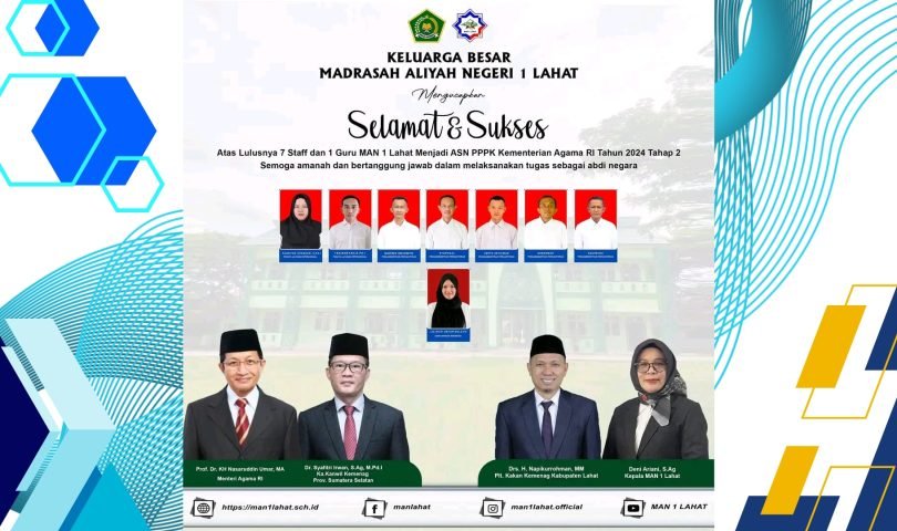 Dengan kelulusan ini, MAN 1 Lahat berharap seluruh pegawai yang telah menjadi ASN PPPK dapat menjalankan peran sebagai abdi negara yang amanah, profesional, dan menjadi teladan dalam melayani masyarakat serta memajukan dunia pendidikan madrasah secara menyeluruh.
