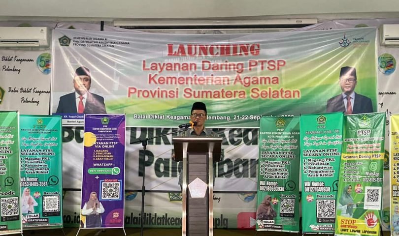 Inovasi layanan publik senantiasa terus dikembangkan oleh Kantor Wilayah Kementerian Agama Provinsi Suamtera Selatan. Kali ini sebagai wujud implementasi dari Keputusan Menteri Agama (KMA) 788 Tahun 2021 tentang Pelaksanaan Sistem Pemerintahan Berbasis Elektronik (SPBE) pada Kementerian Agama telah di launching layanan daring (online) Pelayanan Terpadu Satu Pintu (PTSP). Dengan demikian sebagian layanan di kanwil kemenag sumsel dapat dilakukan tanpa harus tatap muka.