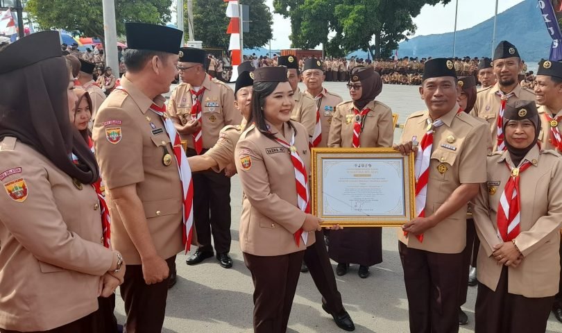 Kamabigus MAN 1 Lahat Dra. Sumila, M.Pd.I. Mengikuti Upacara Hari Pramuka Ke 61 Tingkat Provinsi Tahun 2022. Inspektur Upacara Kamabida Sumatera Selatan H. Herman Deru, S.H,. M.M. Didampingi Ka Kwarda Sumatera Selatan Drs. H. Reza Fahlevi, M.M. Di Danau Ranau Kabupaten OKUSelatan. Minggu (5/9)