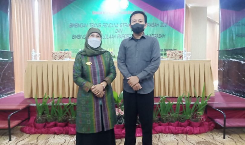 Kepala Madrasah Aliyah Negeri 1 Lahat Dra. Sumila, M.Pd.I bersama Operator RDM mengikuti bimbingan teknis (Bimtek) Rencana Strategis (Renstra) dan pengelolaan Rapot Digital Madrasah (RDM) di hotel Beston Palembang, 11-13 November 2021. Bimtek diselenggarakan oleh Kelompok Kerja Madrasah provinsi Sumatera Selatan. Kegiatan tersebut dihadiri oleh 79 orang peserta yang terdiri dari kepala madrasah, wakil kepala madrasah dan operator RDM.
