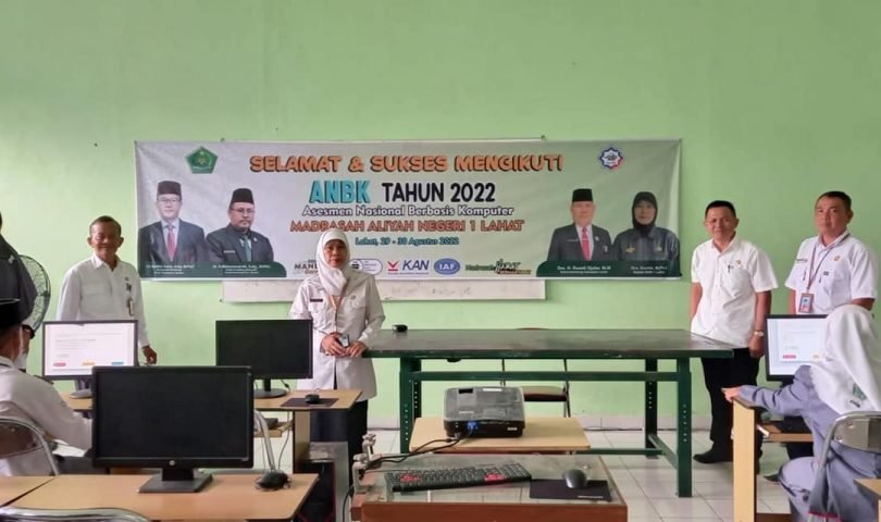 Kepala MAN 1 Lahat Dra. Sumila, M.Pd.I. Didampingi Kepala Urusan TU. Marno, S.Pd.I,. M.M., Wakil Kepala Madrasah. Memonitor Pelaksanaan ANBK ( Asismen Nasional Berbasis Komputer ) Hari Terakhir MAN 1 Lahat Tahun 2022. Di Lab Komputer MAN 1 Lahat. Selasa (30/8)