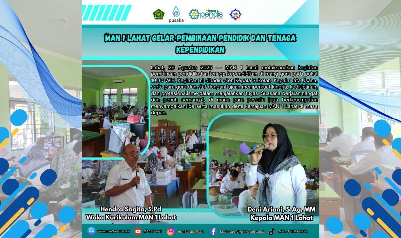 Lahat, 26 Agustus 2025 — MAN 1 Lahat kembali menunjukkan komitmennya dalam meningkatkan kualitas pendidikan dengan menggelar kegiatan pembinaan bagi pendidik dan tenaga kependidikan. Acara yang berlangsung di ruang guru ini dihadiri langsung oleh Kepala MAN 1 Lahat, Wakil Kepala Sekolah, serta Kepala Tata Usaha.