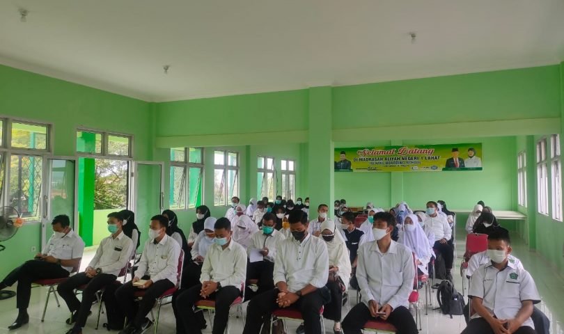 Kepala Madrasah Aliyah Negeri 1 Lahat, Sumila memimpin rapat pembagian tugas mengajar dan Wali Kelas Semester Ganjil Tahun Pelajaran 2021/2022 di Gedung keterampilan MAN 1 Lahat, Selasa (13/7).