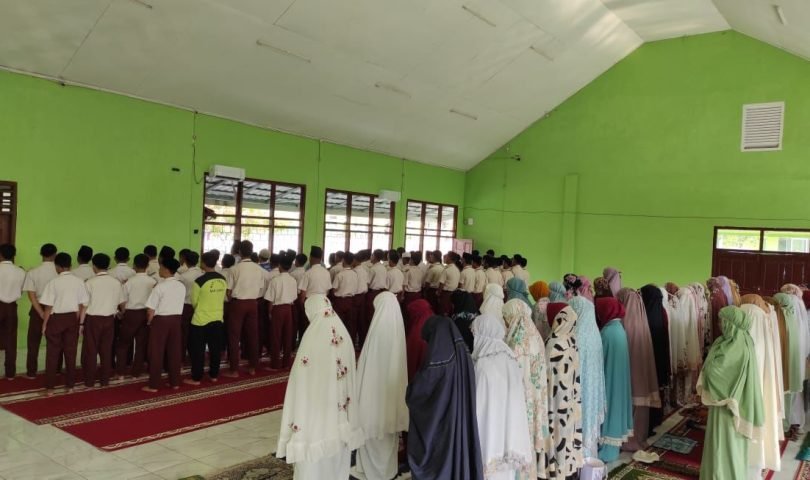 Sebagai bentuk kepedulian terhadap kaum muslimin korban wafat atau syuhada pada kejadian konflik kemanusiaan di Palestina, MAN 1 Lahat menggelar sholat ghaib di aula madrasah, Rabu (08/11/2023). Dipimpin imam ahmad Rosidin selaku guru MAN 1 Lahat, sholat ghaib diikuti dengan khusyuk oleh seluruh siswa, guru, pegawai MAN 1 Lahat.