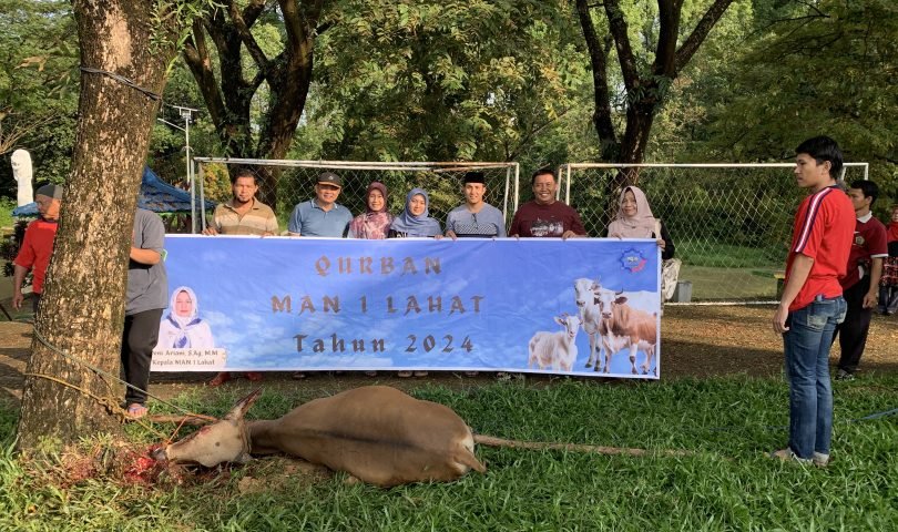 MAN 1 Lahat menggelar acara penyembelihan hewan qurban pada hari Rabu, 19 Juni 2024. Acara ini berlangsung di lapangan madrasah mulai pukul 7:30 pagi hingga selesai pemotongan. Hewan yang disembelih terdiri dari satu ekor sapi dan satu ekor kambing.