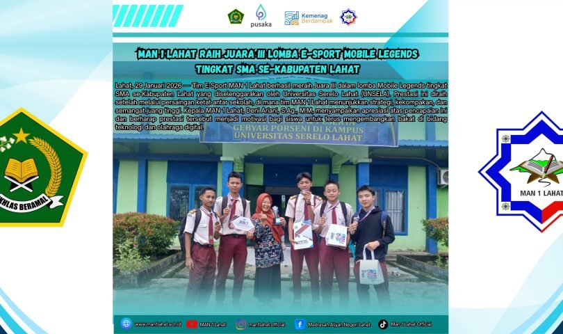 Lahat, 29 Januari 2026 — Madrasah Aliyah Negeri (MAN) 1 Lahat kembali menorehkan prestasi membanggakan di bidang e-sport. Tim MAN 1 Lahat berhasil meraih Juara III dalam lomba E-Sport Mobile Legends tingkat SMA se-Kabupaten Lahat yang diselenggarakan oleh Universitas Serelo Lahat (UNSELA).