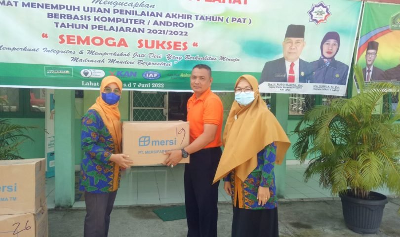 MAN 1 Lahat menerima bantuan tablet tambah darah (Fe) mandiri dari Puskesmas Bandar Jaya Lahat, Tablet tersebut diterima oleh Waka Sarana Prasarana, Toto Kamis (16/6).