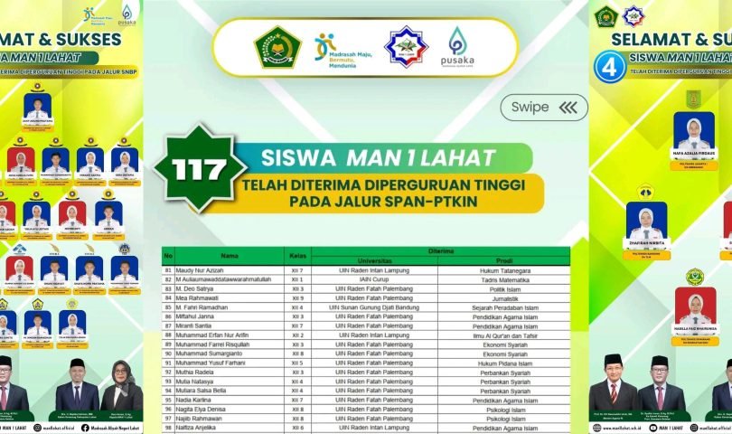 MAN 1 Lahat Berita Prestasi Membanggakan, 142 Siswa MAN 1 Lahat Lulus ke Perguruan Tinggi Negeri Tahun 2026