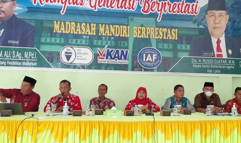 Pembukaan Rapat Komite MAN 1 Lahat Oleh Kepala MAN 1 Lahat, Dra. Sumila, M.Pd.I Hadir, Kepala Kantor Kementerian Agama Kabupaten Lahat, yang diwakillan Kasi Pendidikan Madrasah, Dra. H. Rahman Taufik, M.Pd. Ketua Komite Drs. H. Azhari Cikman. Kepala Urusan TU, Marno, S.Pd.I,.M.M.. Wakil Kepala Madrasah Serta Wali Siswa/iKelas X. Di AULA MAN 1 Lahat. Rabu, 8 Juni 2022