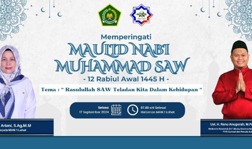 Maulid Nabi Muhammad SAW diperingati oleh umat Islam sebagai bentuk wujud rasa cinta kepada Rasulullah. MAN 1 Lahat mengadakan peringatan Maulid Nabi Muhammad SAW Tahun 1446 H – 2024 M yang bertempat di madrasah setempat, Pada Selasa (17/09) pagi.