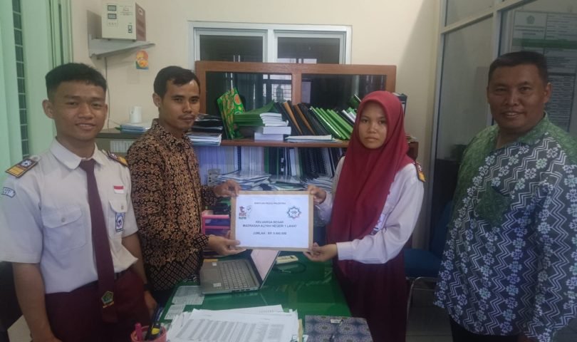 Donasi diserahkan oleh Kepala MAN 1 Lahat yang dalam hal ini diwakilkan oleh Pembina OSIM MAN 1 Lahat Lutfan Marlin ditemani oleh 2 orang perwakilan OSIM dan di terima oleh bendahara kemenag kab.lahat efriansyah diruangan kebendaharaan kemenag lahat.